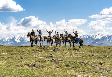 Переезд до с. Артыбаш, где на причале группа пересаживается в катер, который отвезет её сначала к водопаду Корбу, где помимо экскурсии группу ожидает обед, а потом и к южному берегу Телецкого озера.