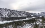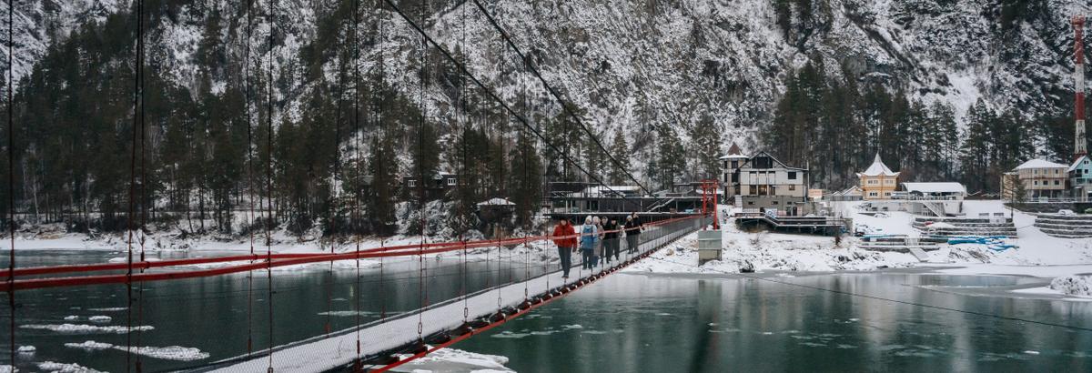 На смотровой площадке открывается вид на долину реки Катунь, горные хребты и село Манжерок.