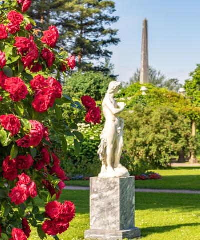 Живописный изумрудный сад словно обрамляет дворец, выступая его естественным продолжением. Он сочетает регулярные французские сады и пейзажные английские ландшафты. Пруды, павильоны, мосты, аллеи — идеальное пространство для неспешных прогулок и вдумчивых наблюдений за тем, как меняется восприятие дворца при взгляде с разных ракурсов.