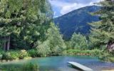 К водной глади склоняются деревья, за спинами которых встают могучие горы.