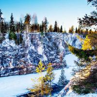 Вы посетите горный парк Рускеала, водопады Кивач, Ахинкоски и Койриноянкоски, горы Паасонвуори и Сампо. Насладитесь красотой хвойных лесов, фактурных скал и заснеженных островов. Сможете покататься на аэролодке по льдам Ладожских шхер. Прокатитесь на снегоходах, пройдете по пушистому снегу на снегоступах, поучаствуете в мастер-классе по приготовлению калиток, пообщаетесь с дружелюбными хаски и отведаете северную кухню.