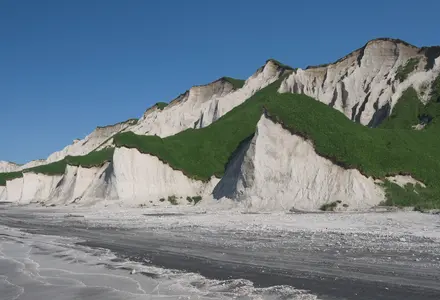 Черные и Белые скалы острова Итуруп – это геологические памятники, образованные подводным извержением вулкана около 20 тысяч лет назад.
