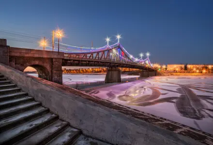 Вы полюбуетесь зимним праздничным городом, красивейшей набережной и одним из символов Твери – Старым Волжским «кружевным мостом».